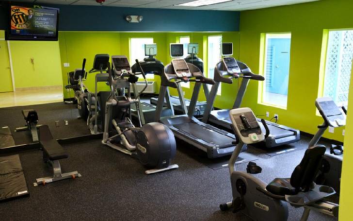 site fitness center equipped with cardiovascular machines and free-
